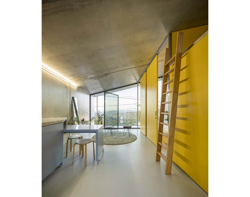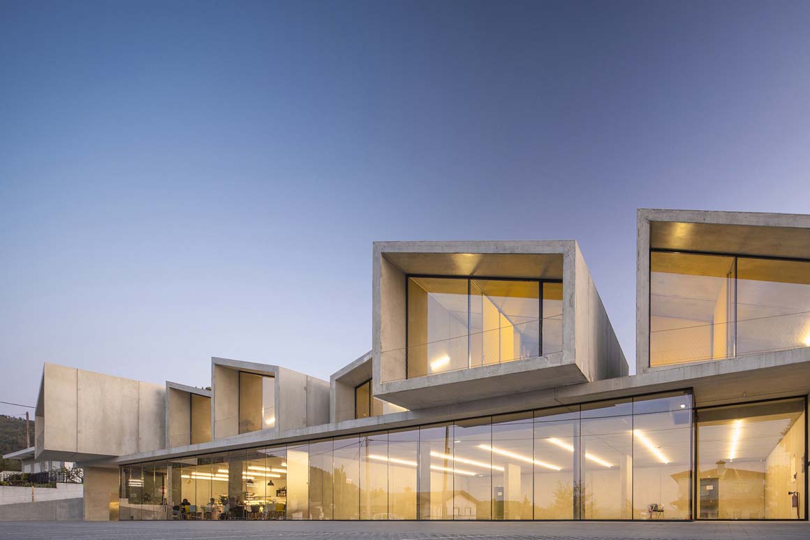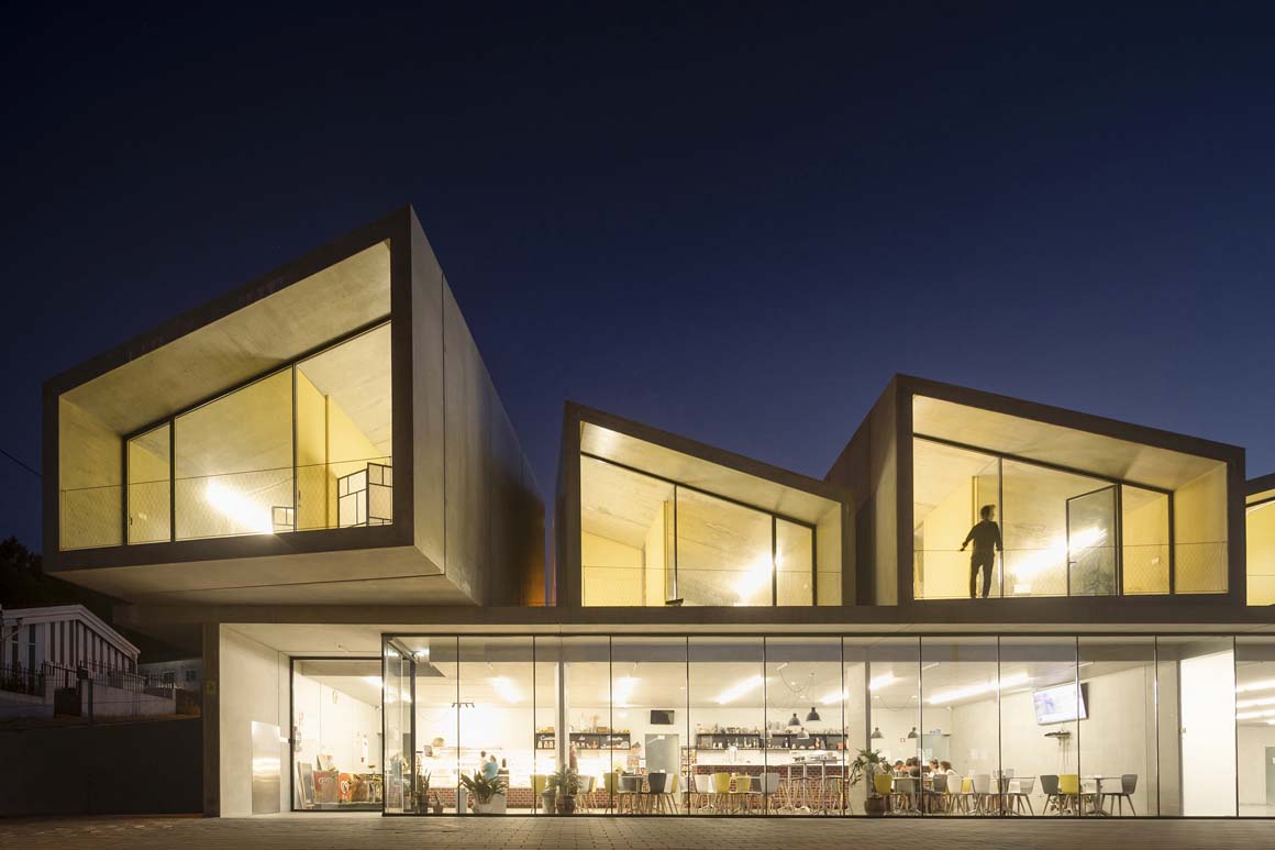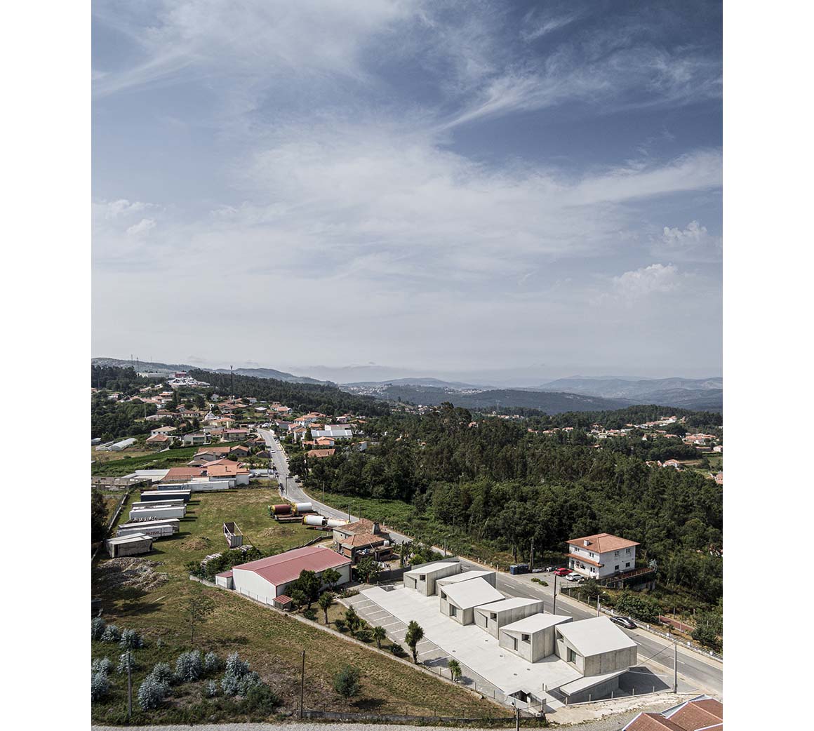 Project: 1,000m2 Prefabricated / Location: Vale de Cambra, Portugal / Architect: SUMMARY – Samuel Gonçalves (project leader), Inês Rodrigues, João Meira, Gonçalo Vaz de Carvalho / Engineering: FTS, Technical Solutions / Prefabrication and assembly: Farcimar, Soluções em Pré-Fabricados de Betão / Client: Private / Category: multi-services + housing / Construction area: 998m2 / Predominant Material: Reinforced concrete / Completion: 2019 / Photograph: Fernando Guerra | FG+SG
