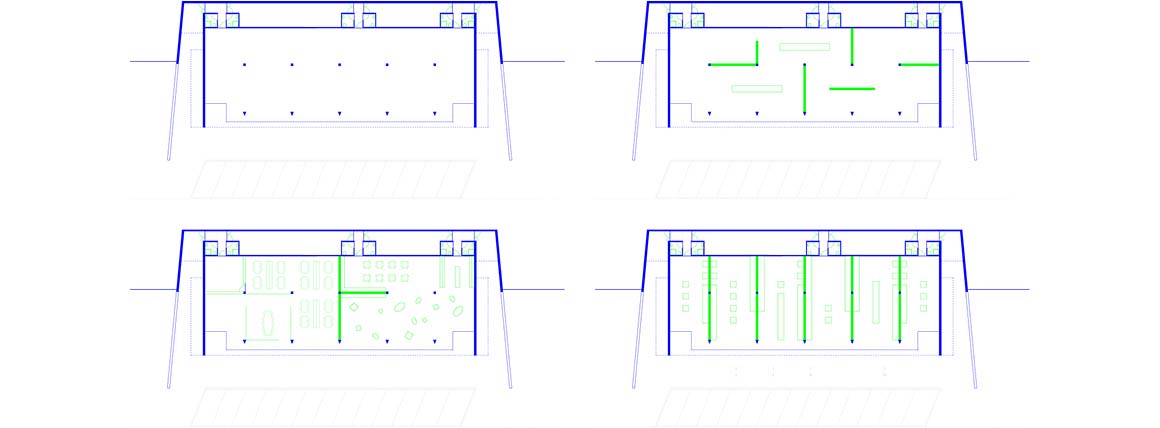 The requirements for this project were boldly defined from the beginning: the construction should be fast, cost-effective and changeable over time. This prompted the studio to use prefabricated elements and to leave parts of the project undefined, assuming immediacy, flexibility and resource optimization as core themes.