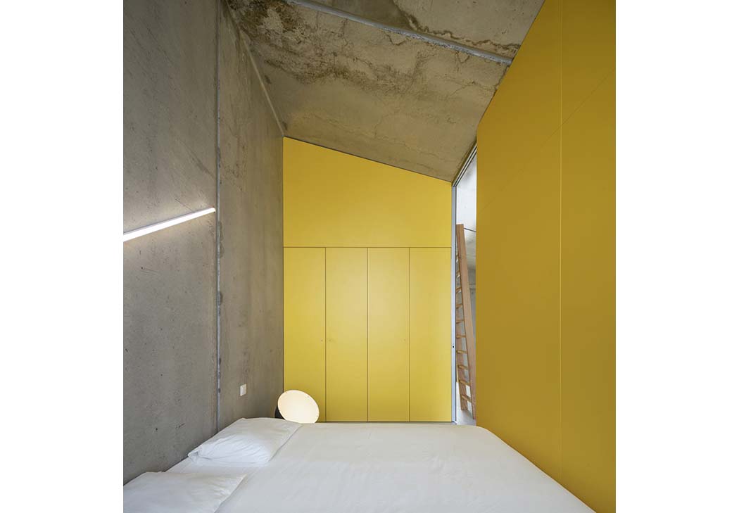 The ground floor is shaped by prefabricated slabs and structural panels along the external perimeter. This area was conceived in a flexible way: it is possible to add or remove compartments or let the whole floor function as one big open space. The users may adapt the space according to their needs.
