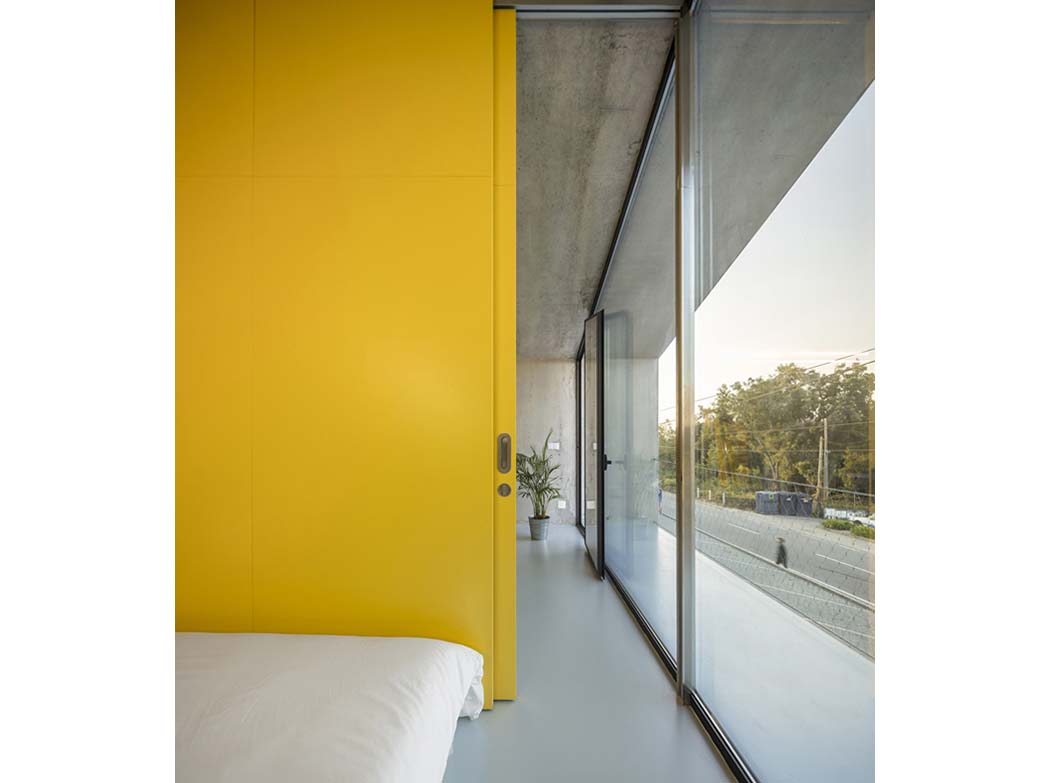 Throughout the building, the structural material – precast concrete – is directly exposed, without any additional finishing, reducing the resources, the manpower and the labor involved in the construction process and, consequently, reducing its environmental impact. This approach had a direct effect on accelerating the building process: all its components are fully prepared in the factory and quickly assembled in situ, performing at once as structure, insulation and cladding elements.