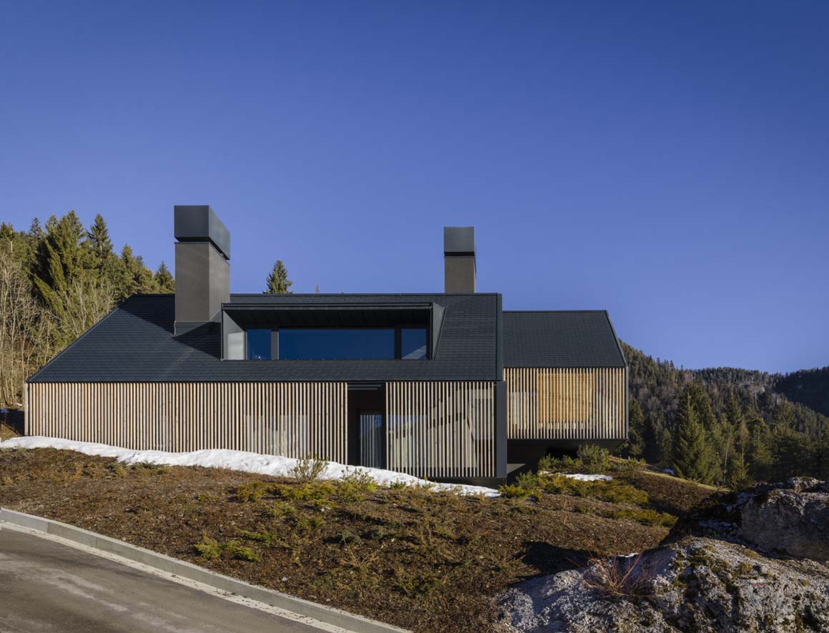 From the outside the house is characterized by an external “skin” made of wood, like much traditional alpine architecture. Today this façade loses the traditional functions related to agriculture, and becomes a sun-breaker, a necessary element of solar control and energy-savings.