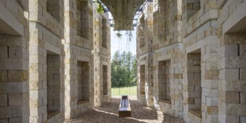 The plot of land is 20m long at the front and 10m in depth, and the program is developed in a quarter of the available space – an area of five by ten meters. Given the specific requirements of the desired appearance, the immediate benchmarks of context, and also from a personal philosophy of design where tectonics are essential, the construction material was chosen as hollow concrete blocks.