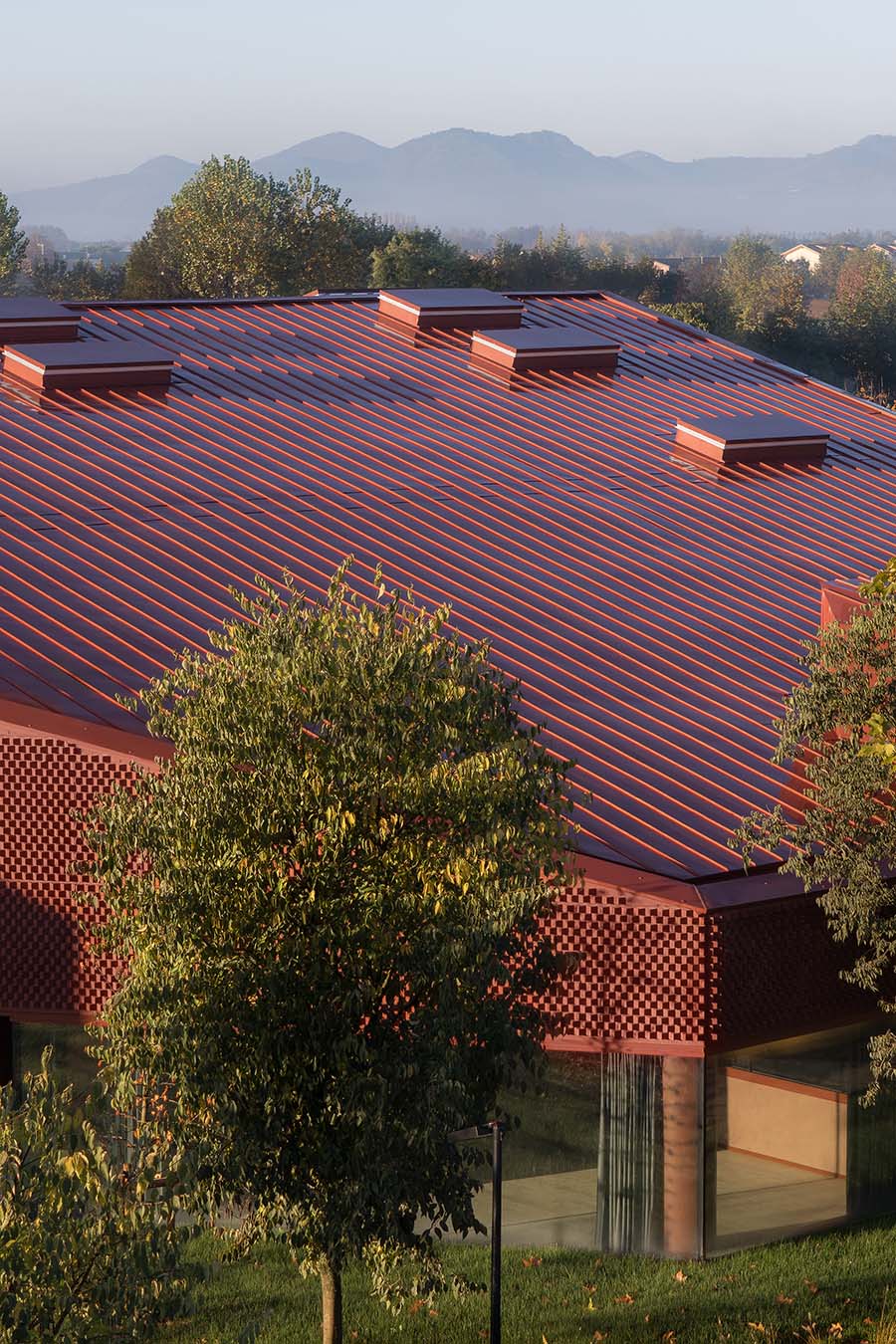 The Albignasego Auditorium Theater extends beyond its role as a performance venue. The lobby functions as a multipurpose social space for events and gatherings, while the integration of a café and independent rehearsal rooms ensures that the building remains open and active within the local community. The landscape design continues the dialogue with the adjacent park, employing native plantings that reflect seasonal change and soften the boundary between architecture and nature.