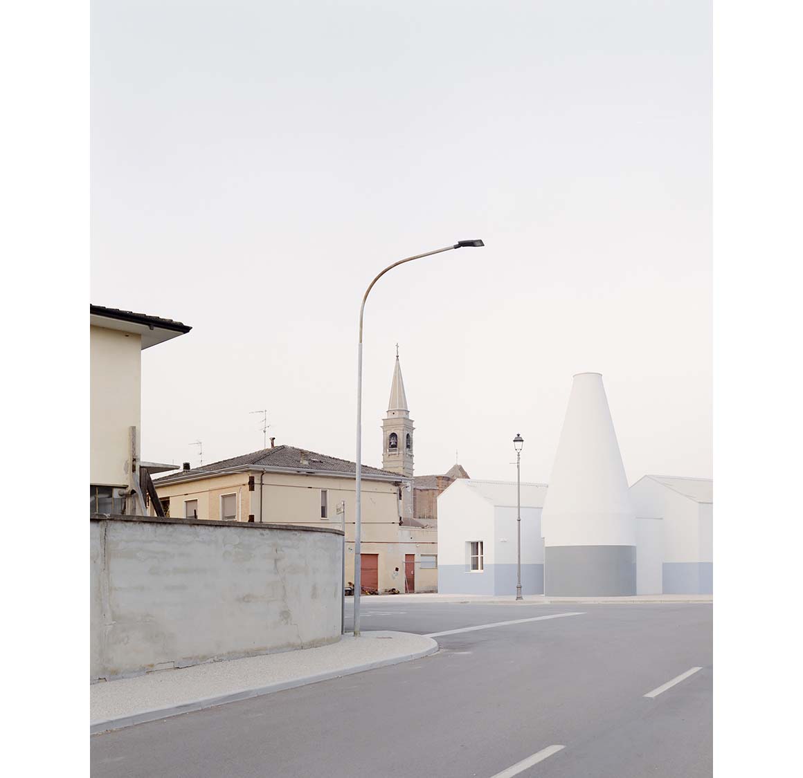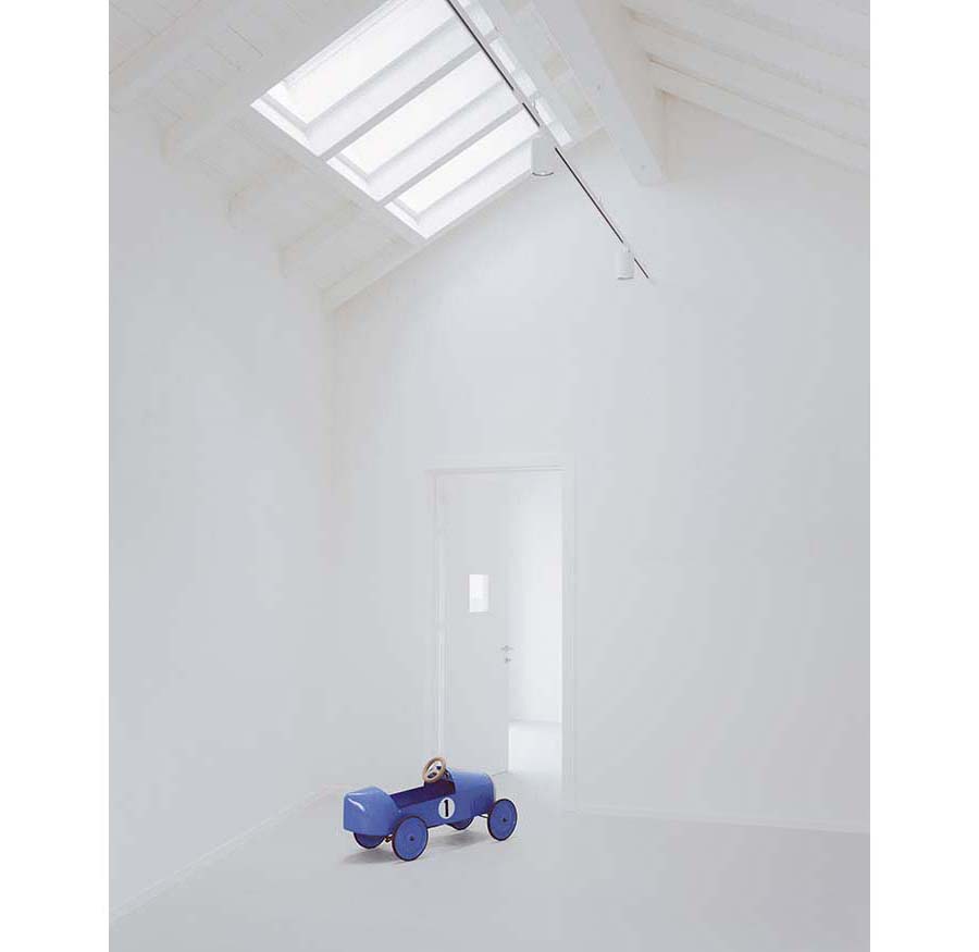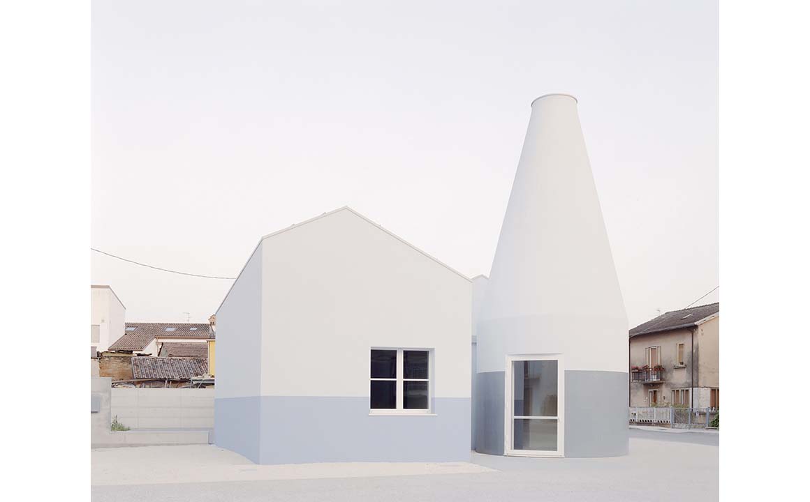 The nursery, designed as a civic facility in San Giacomo delle Segnate, Italy, is composed of a series of simple volumes. Organized around a central courtyard, the layout recalls the rural architecture of the Po Valley, where the main house, tenant dwellings, barns, and storage buildings cluster together. The entrance is marked by a conical roof, whose skylight brings daylight from above, illuminating the threshold and defining the point of transition. Beneath pitched roofs, the other volumes contain classrooms and service areas. Two classrooms open to the courtyard through large openings, while the third connects directly to the sky through a cut in the roof.
