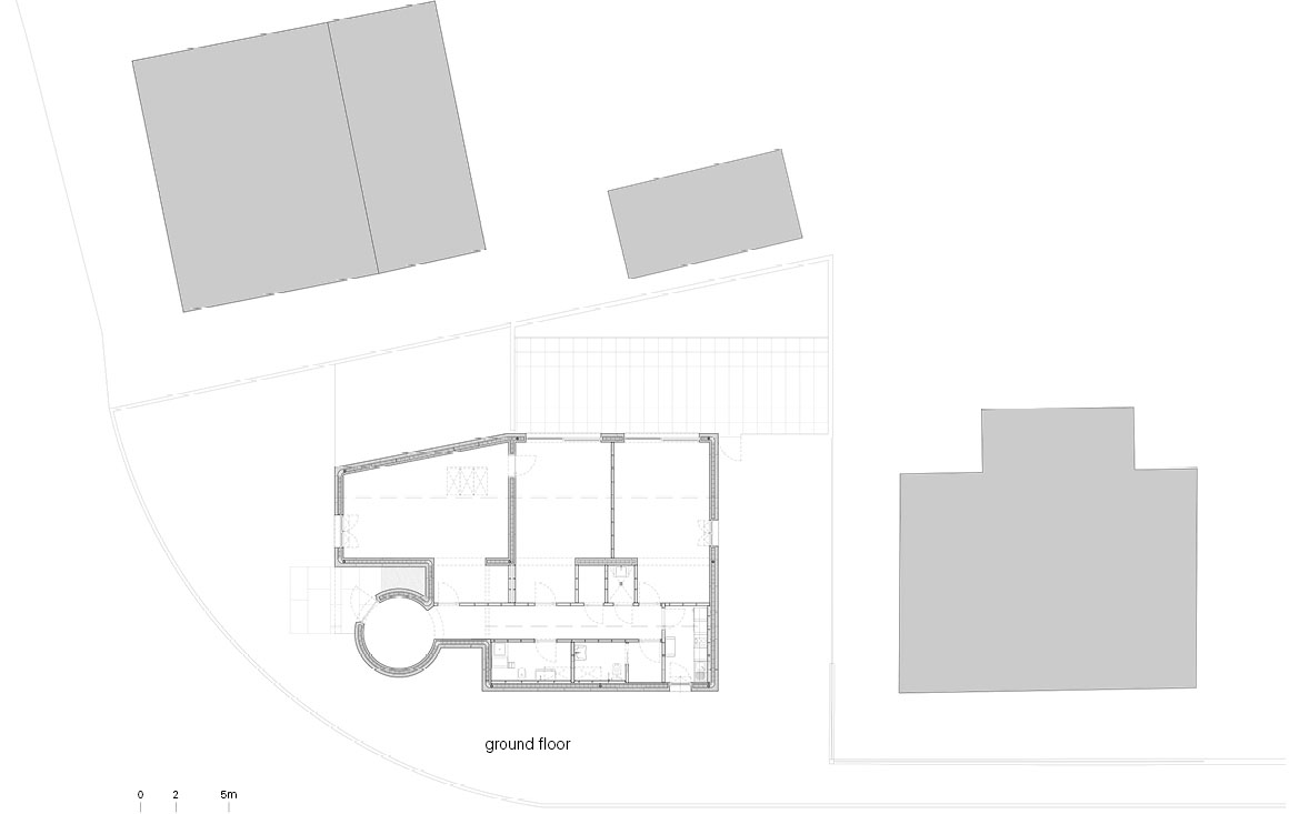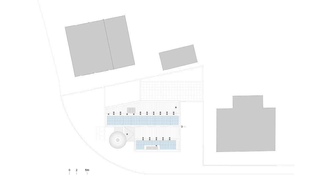 Situated within the compact fabric of a small town, the project finds its place among irregular boundaries that define the local urban axes. The composition of simple forms, reinterpreting rural building types in a contemporary way, becomes a luminous setting where dreams and hope unfold under the open sky.
