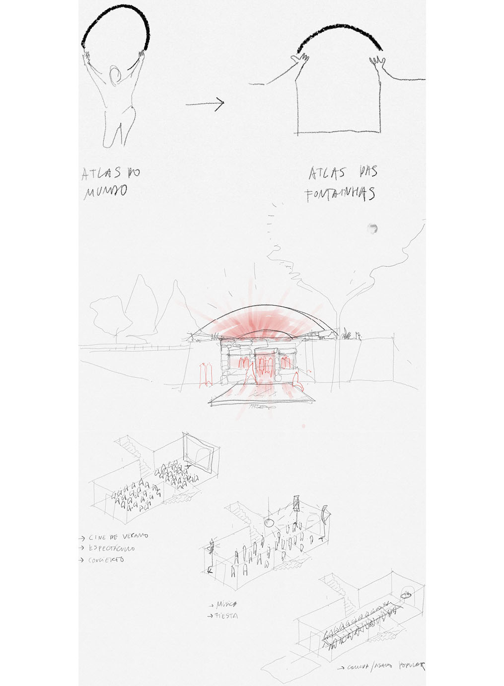 In the central square of a residential neighborhood on the outskirts of Portugal, the ruins of an old villa lay abandoned, hidden among stone walls and trees. A stone fountain and a sculpture of Atlas, the giant from Greek mythology placed above it, have, over time, become symbolic presences in the collective memory of the place. “Project Atlas” builds on this value of preservation and reactivates the site as a public space for local residents, serving to restore a sense of community in a neighborhood that lacked a place to gather.