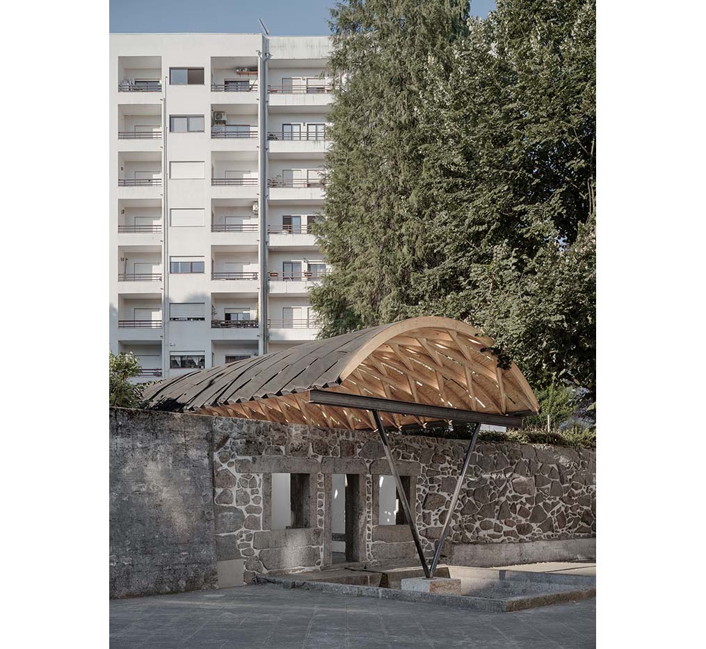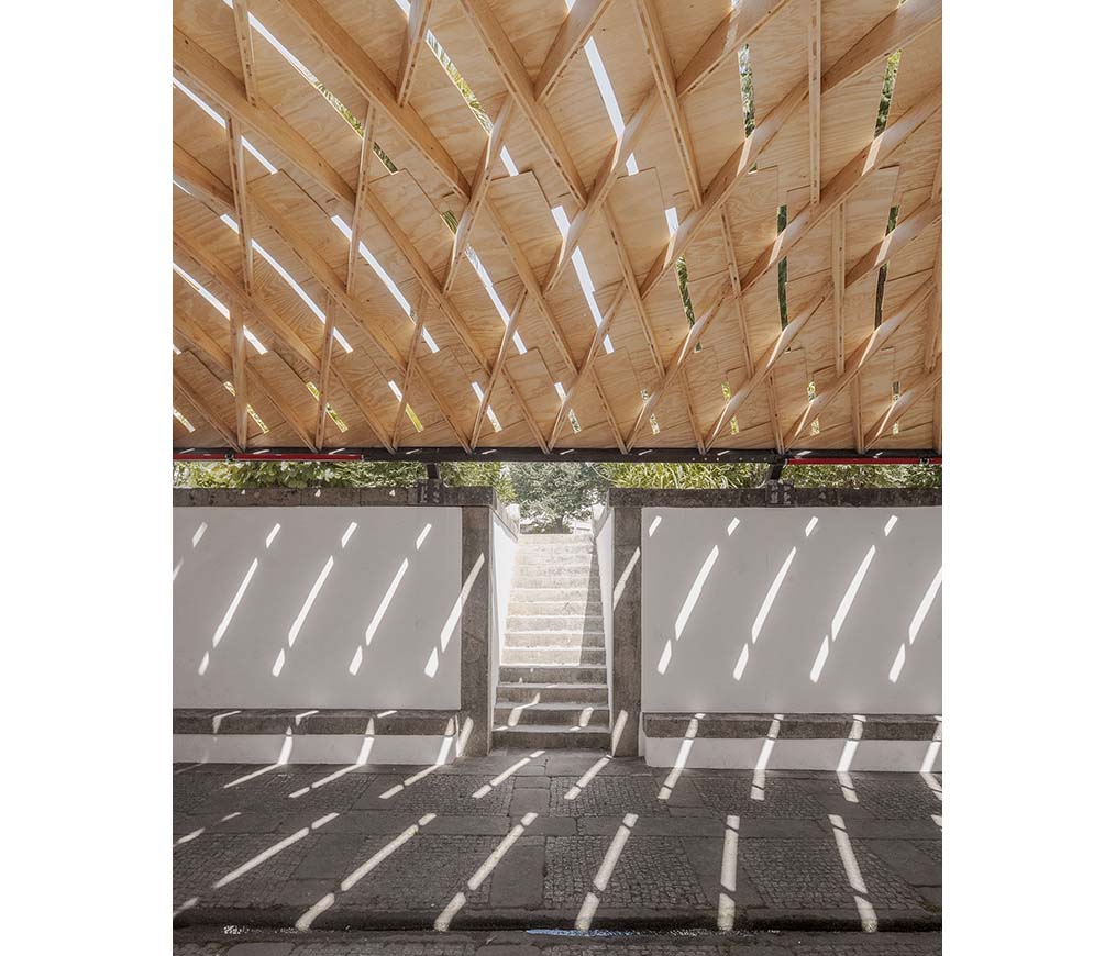 Project: Atlas / Location: Praça das Fontainhas 4700-382 Braga, Portugal / Architect: Manuel Bouzas / Supporters: Cornell AAP, Xilonor / Project team: Structure_Juan F. De la Torre, Cornell AAP_Riley Wines, Varun Gandhi / Production: ArtWorks / Organizers: Forma da Vizinhança, Braga 25 / Curators: Space Transcribers / Use: installation / Gross floor area: 130m² / Completion: 2025 / Photograph: ©Luis Diaz (courtesy of the architect), ©ArtWorks (courtesy of the architect)