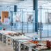 The towering tree trunk standing proudly in the center of the office perfectly suits the identity of Blumer Lehmann, a timber company. The building’s name, Stammhaus, also reflects this connection, as ‘Stamm’ means ‘tree trunk’ in German. Located in the canton of St. Gallen, Switzerland, Blumer Lehmann’s headquarters is a modern wooden structure. The building’s free-form design incorporates straight wooden panels shaped into dynamic curves. By blending traditional timber construction with digital technologies, it showcases a modern aesthetic while demonstrating the versatility and environmental sustainability of wood.