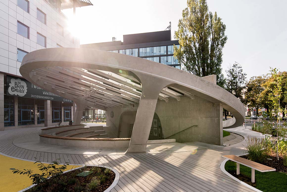 Free open spaces where people can gather to share knowledge is vital to the wellbeing of any city, and Warsaw’s Brain Embassy AmphitheaterBEAis such a space. Every society needs a space for fireside chats, where citizens can listen to others, observe reality, and express oneself.