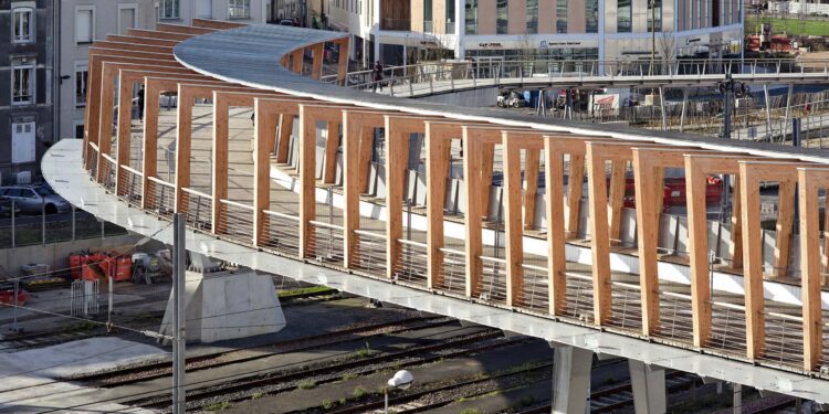 A Path and a Place with Wooden Porticoes of Strong Identity Dietmar Feichtinger Architectes Dietmar Feichtinger Architectes have designed a new bridge for pedestrians and cyclists at the Angers Saint-Laud train station....
