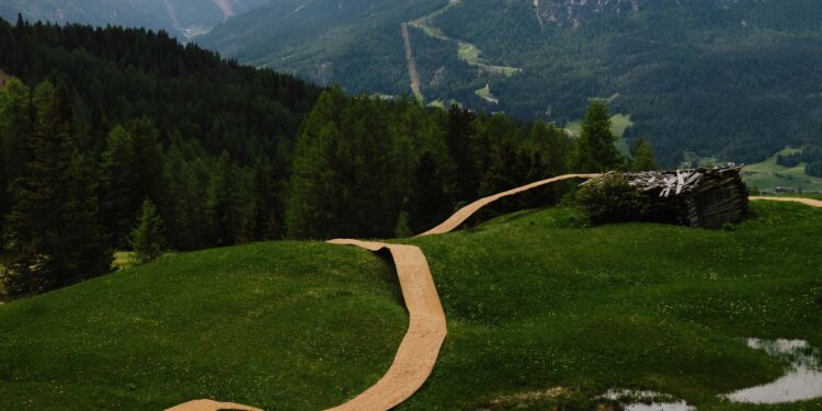 A Path of Dry Grass Across the Alpine Meadows ELSE The hay bale installation that traverses the alpine pastures of the Italian Dolomites is part of the international open-air art biennale SMACH...