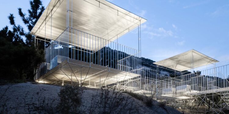 A steel structure embodying leisure in nature Kong Xiangwei Studio Nestled in the vast natural landscape of Shandong Province, China, where lush forests and valleys converge, lies a meditation garden designed to...