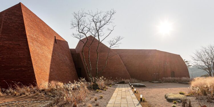 A red ruin embraceing landscape Sosokkianak In Jeonryu-ri, Haseong-myeon, Gimpo-si, Gyeonggi-do, on a hill overlooking the Han River, a single red pyramid-shaped mass is positioned. Beginning with an architectural brief that aimed...