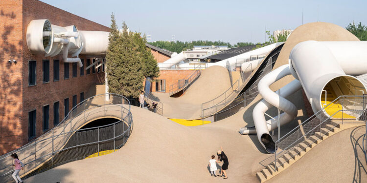 Inspiring imagination through the pipes, roofs, and hills waa In the heart of Beijing, a unique playground, "Playscape," has emerged, transforming a former 1970s warehouse complex into a dynamic space for outdoor...