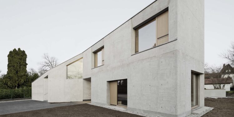 A concrete residence of crystalline form육면체 콘크리트 조각같은 단독주택, 빌라 L Pool Leber Architekten | 풀 레베르 아키텍텐 Villa L, a detached family house containing an office wing and an apartment for...