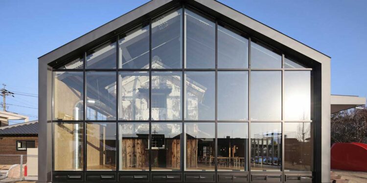 A Japanese wooden residence is transformed into a kindergarten, housing it under a new roof and curtain wall 일본 목조 가옥을 개조하고 새 지붕과 커튼월을 얹은 마쓰자키 유치원 Shigeru Aoki Architect &...