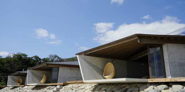 Atelier TEKUTO designs a collection of tourist accommodation, drawing inspiration from origami, shells and traditional Japanese granaries 종이를 접은 듯한 콘크리트 구조물에 삿갓조개를 본뜬 지붕을 얹은 숙박시설 Atelier TEKUTO, Amami Design Firm...