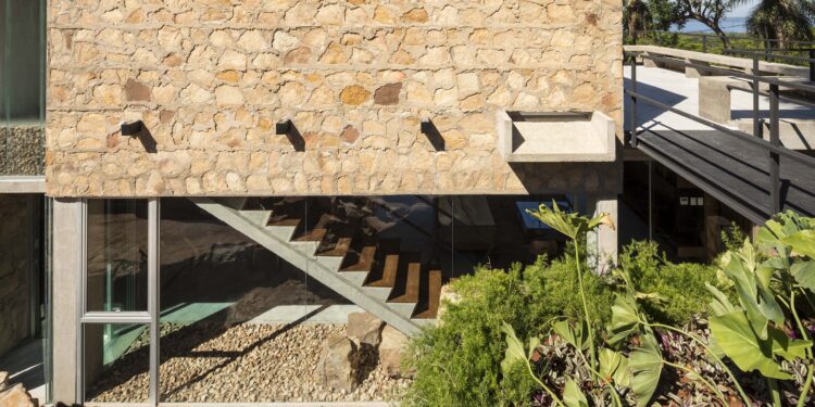 Making use of the stones from the site to integrate with the natural surrounding OMCM Arquitectos Between the stones and the water, in a lot situated in the mountain range of Los...