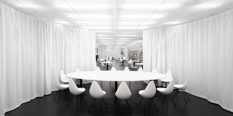 Adjustable space and light acoustic curtains under a light ceiling Andreas Schüring Architekten The new library of the University of Applied Sciences for Public Administration in Cologne’s Deutz is designed based on...