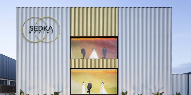 A wedding attire business featuring wedding ring like staircase under the round skylight Pablo Muñoz Payá Arquitectos Industrial areas often offer large spaces with easy access, increasingly rare characteristics in consolidated urban...