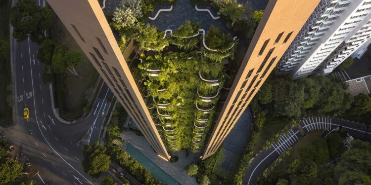 A green wood rising up into the sky in the lush of steel and glass towers Heatherwick Studio A home in a gardenFifty years ago, Singapore was imagined as a ‘city in...