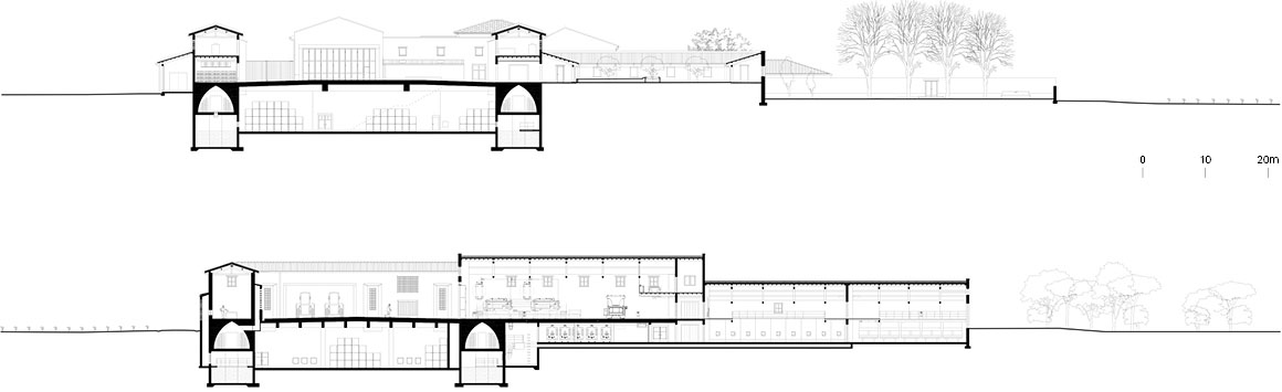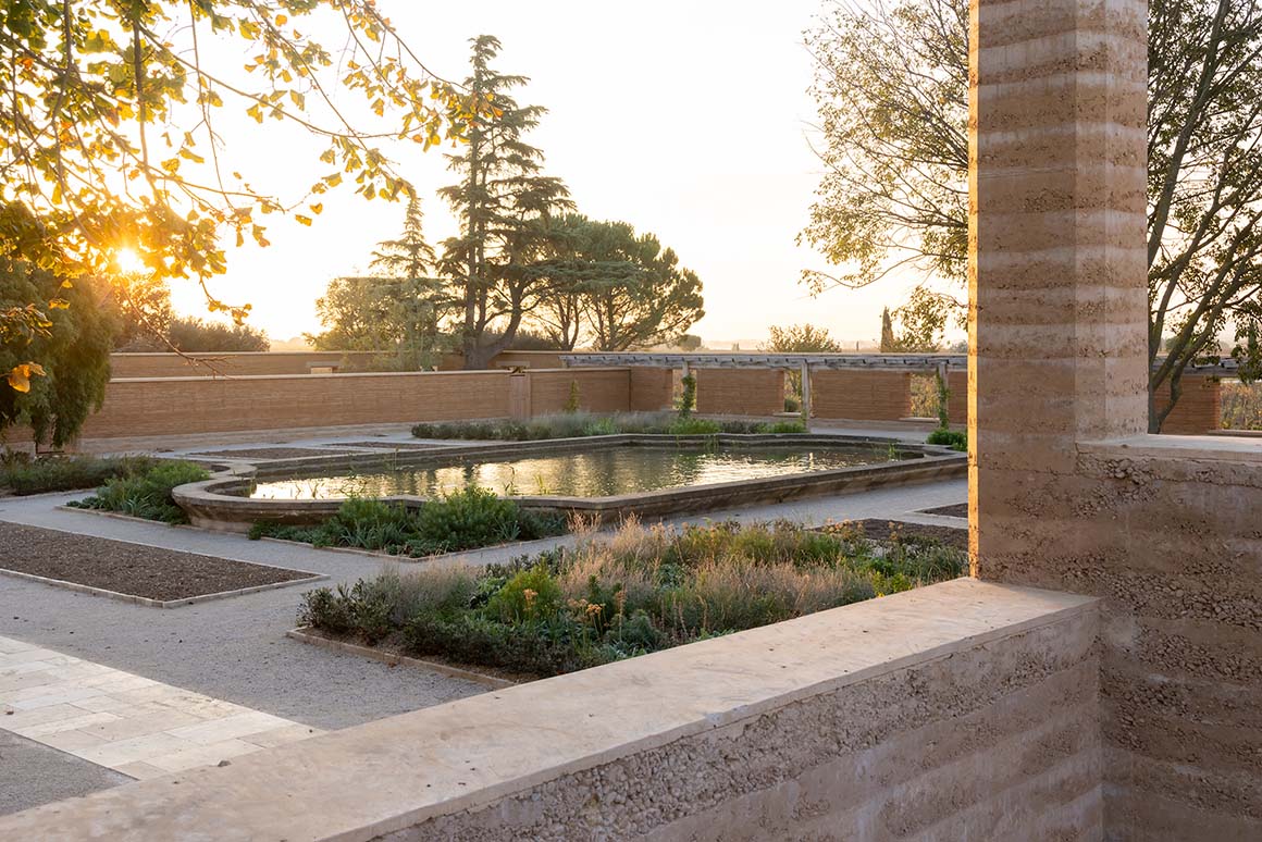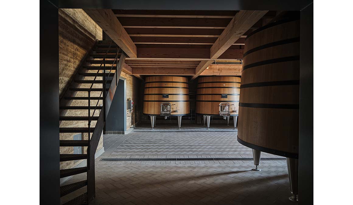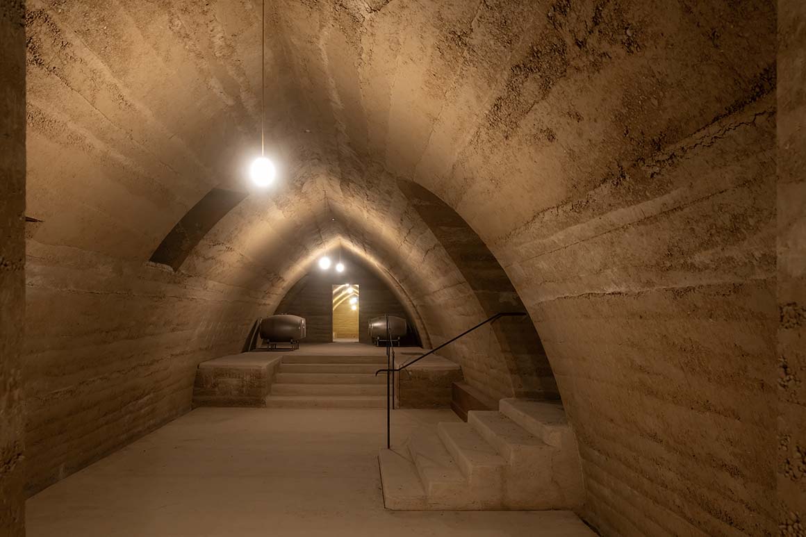 Project: Château de Beaucastel Winery / Location: Courthézon, Vaucluse, France / Architects: Studio Mumbai (Bijoy Jain) + Studio Méditerranée (Louis-Antoine Grégo) / Project team: Studio Mumbai_Giacomo Monari; Studio Méditerranée_Simone Picano, Lucas Stein / Building consultant: Batiserf_Philippe Clément, Frédéric Blanc, Sylvain Logeay / Structural engineer: Jean Claude Morel / Fluids engineer: Dr. Jochen Kähferhaus / Electrical engineer: Ingerop_Arnaud Prince / Process engineer: Ingerop_Stéphane Hamel / CVC consultant: Ingerop_Jean-Baptiste Flande / Technical controller: APAVE Sudeurope_Laurent Dandres, Yael Rivasi / Landscape architect: Tom Stuart Smith Ltd_Tom Stuart Smith, Nicolas Pusterla / Client: Perrin family / Use: winery, garden, housing / Type: renovation, extension & new construction / Gross floor area: 7,400m² / Extension: 4,500m² / Renovation: 2,900m² / Cost: 15,5M € / Design: 2017 / Construction: 2021.11-2025.5 / Completion: 2025 / Photograph: ©Iwan Baan (courtesy of the architect); ©Michael Falgren (courtesy of the architect)