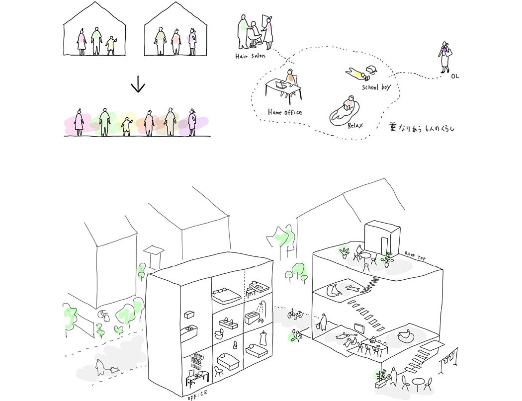 An Organic Space for a Family Like a School of Fish that Freely Gather and Disperse