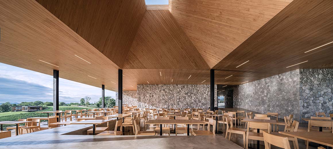 Project: Choui Fong Tea Cafe 2 / Location: Maechan District, Chiang Rai Province, Thailand / Architects: IDIN Architects – Jeravej Hongsakul, Eakgaluk Sirijariyawat, Sakorn Thongdoang, Sittipong Wiriyapanich / Interior architects: IDIN Architects – Jureerat Korvanichakul, Siravich Pienpitak / Structural engineer: Chaiyot Pinitjitrsamut / System engineer: Eakachai Hamhomvong, Panot Kuakoolwong / Contractor: Det Thijina / Client: Shanya Wanasphitaksakul / Area: 1,330m² / Completion: 2018 / Photograph: Depth of Field Co., Ltd