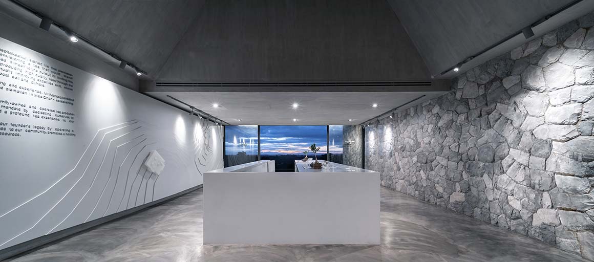 The designers proposed a rectangular shaped floor plan, that allows most areas to face the view. Unlike the first café, which was embedded into the land, allowing visitors to see a panoramic view from its top, the Choui Fong Tea Café 2 stands on the hill to maximize the usable area and be in keeping with the existing factory nearby.