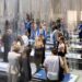 Visitors enter through three main entrances beneath the protruding masses: one on the southwest ground level, and two others on either side of the first floor. At the center of the first floor stands a grand staircase that runs through the middle of the building and continues upward. Educational spaces such as seminar rooms, lecture halls, and laboratories are arranged along each mass.