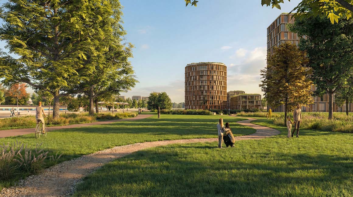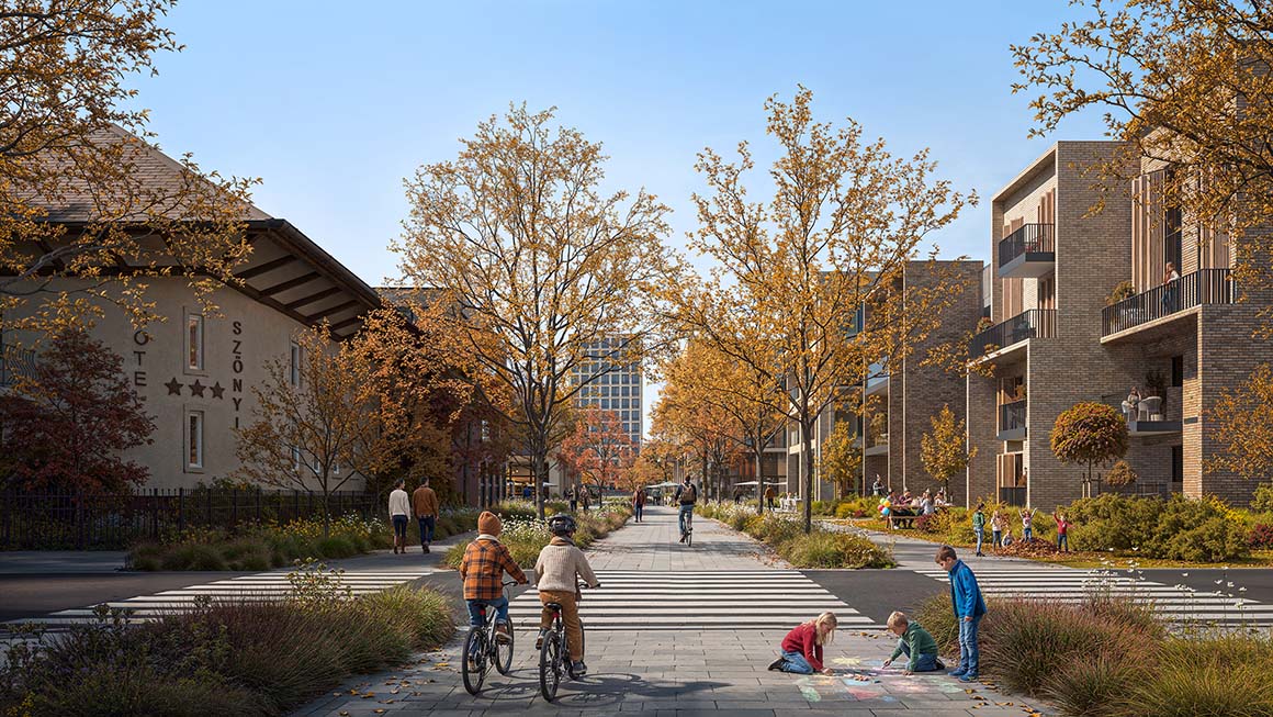 Located in the northeastern part of Budapest, the site has long been regarded as one of the city’s primary areas of industrial decline. The masterplan proposes a landscape-led mixed-use community comprising more than 10,000 homes, upgraded transport infrastructure, and a mix of commercial and civic functions. It is guided by the principles of the “15-minute city,” enabling daily life within a 15-minute walk or cycle at the neighbourhood scale. The jury described the proposal as a “strong and distinctive urban and architectural vision,” highlighting its “liveable residential environment” and “exceptional quality of public space.” It was also praised for combining a clear urban concept with a high level of feasibility. In particular, the scheme’s neighbourhood-based planning approach, its integration of public space and green networks, and its mobility strategy centred on public transport, walking, and cycling were identified as key strengths.