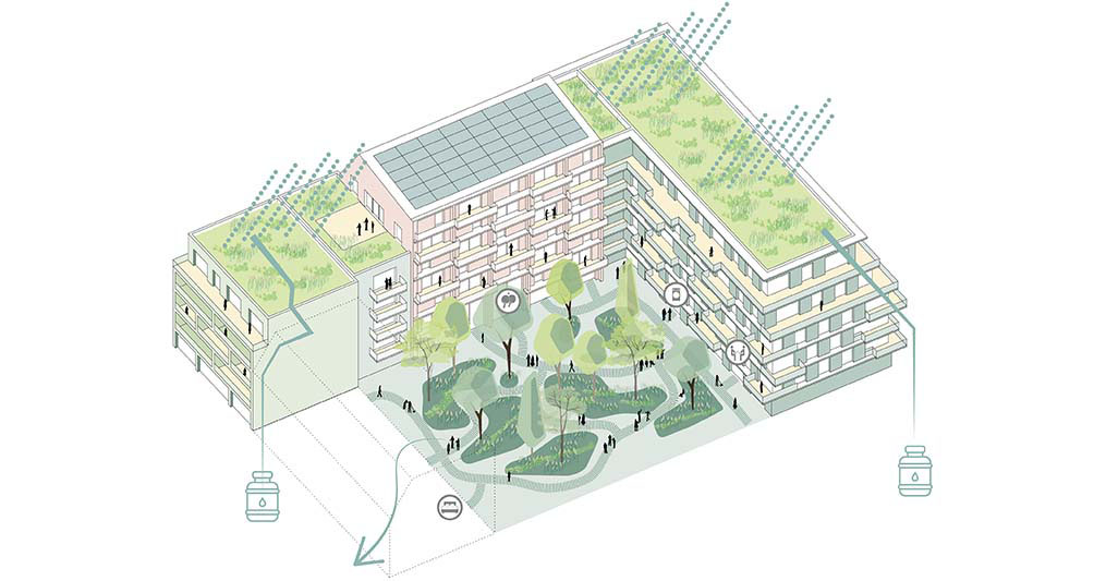 Connection to nature is a central component of the proposal. A combined blue-green infrastructure integrates water networks and green spaces. At its core is a 150,000m² Forest Park, linked to linear parks and the renaturalized Rákos Stream, forming a gently meandering waterscape. Redesigned embankments will provide terraces, walkways, and resting areas, enhancing access to the waterfront.