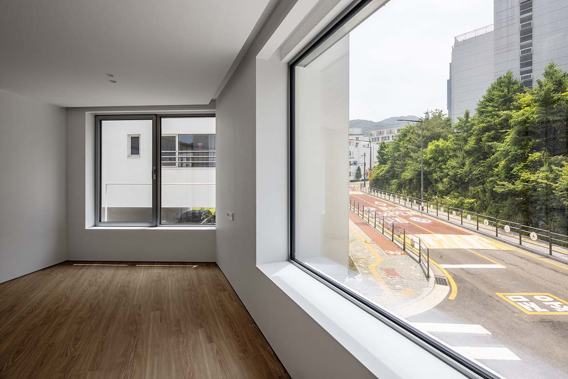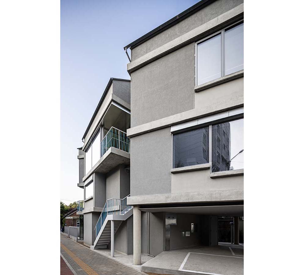Project: Collective House S / Location: Seocho-gu, Seoul / Architect: o.heje architecture / Project team: Haedeun Lee, Jaepil Choi, Donggyeong Kim, Jiyoung Lee / Structural engineer: Eun structural engineering / Mechanical and electrical engineer: Daedo Engineering / Landscape architect: o.heje architecture / Contractor: Jayeon & Woori contractor / Use: Collective House / Site area: 177.7m² / Bldg. area: 106.1m² / Gross floor area: 199.7m² / Bldg. coverage ratio: 59.7% / Gross floor ratio: 112.3% / Bldg. scale: three stories above ground / Height: 11.27m / Parking: 3 cars / Structure: RC + SC / Exterior finishing: exposed concrete, staco, galvanized steel sheet / Interior finishing: EP, wooden flooring / Design and construction: 2023.9~2024.6 / Completion: 2025.6 / Photograph: ©Wooseop Hwang (courtesy of the architect); ©Heejun Park (courtesy of the architect)