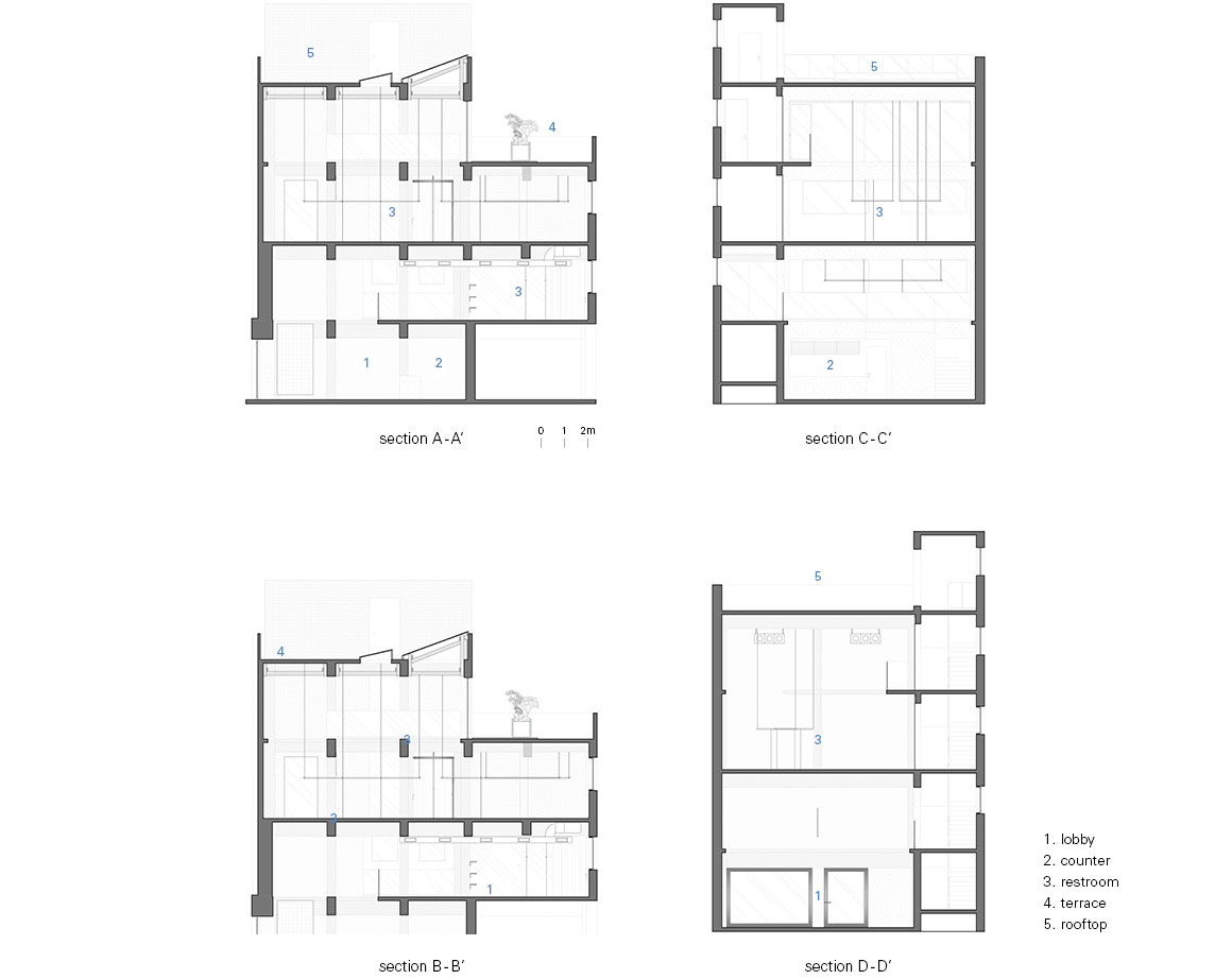 The core question was how to guide visitors upward without forcing the movement. It was not enough to “add stairs.” The aim was to compose a sequence so refined that visitors could surrender to the spatial flow before making a conscious decision. Circulation is therefore legible without signage, while the widths of landings and passages—and the dimensions of stairs, where the body registers comfort most acutely—are carefully tuned to reduce the psychological and physical burden of ascent and descent. At the same time, continuity is secured by stitching together each floor’s scenes, so that sightlines and movement remain connected all the way to the top.