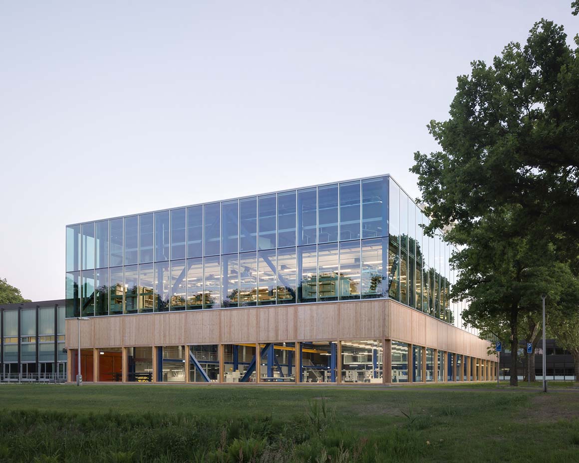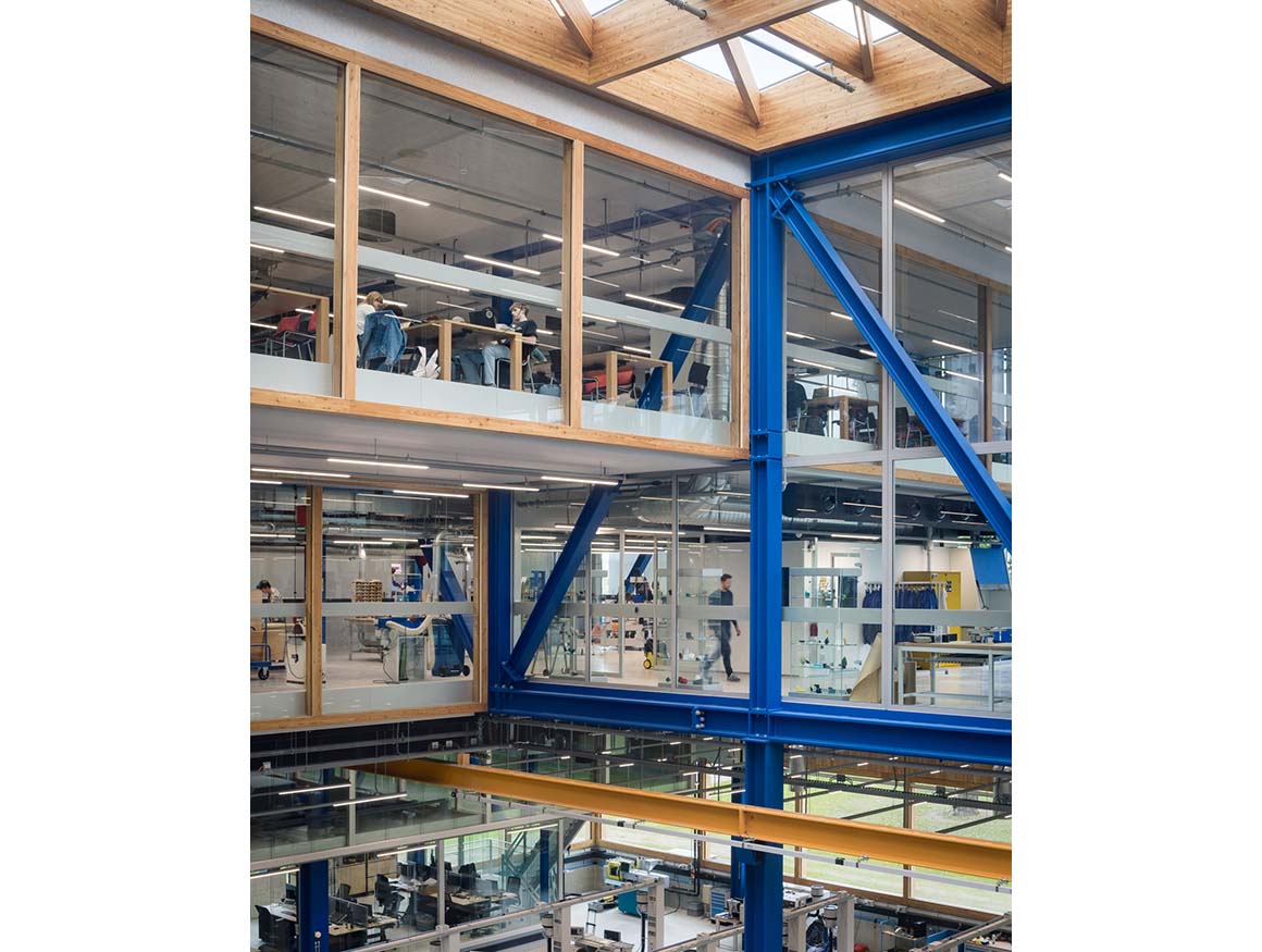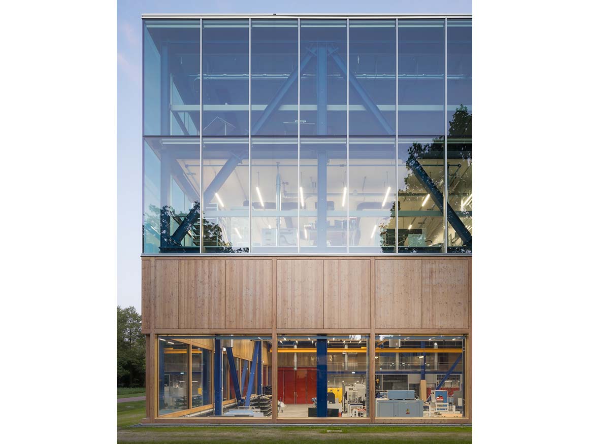 Project: CUBE / Location: Drienerlolaan 5, 7522 NB Enschede, Netherlands / Architects: Civic Architects + VDNDP / Collaborators: building physics and services_Nelissen, structure_Schreuders bouwadvies, sustainability advisor UT_Buro Loo / Interior architect: Studio Groen+Schild / Contractor: WAM&VanDuren Bouwgroep, WSi Techniek / Client: University of Twente, Enschede / User: ET, Faculty of Engineering Technology / Use: metal workshop, welding workshop, assembly workshop, model workshop, laboratory spaces, office / Assignment: ull commission, SO, VO, DO, TO, aesthetic supervision / Gross floor area: 4,734m² / Design and construction: 2020 – 2025 / Completion: 2025 / Photograph: ©Stijn Bollaert (courtesy of the architect)