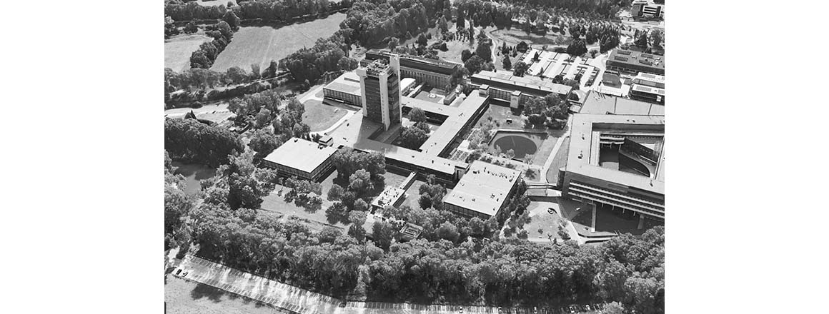 Within a 4,734m² building generously opened through full-height glazing, a vast interior recalls the scale of an industrial production facility. The new CUBE building joins a campus ensemble originally designed in the 1960s by architect Dick van Mourik, composed of a low-rise carré-type courtyard building, now-vanished towers, and a constellation of independent volumes. A large, flexible laboratory adaptable as work or office space is connected on all sides around a pyramidal atrium. Daylight penetrates deep into the interior, and open sightlines reinforce the idea of a showcase building that makes education and research visible.