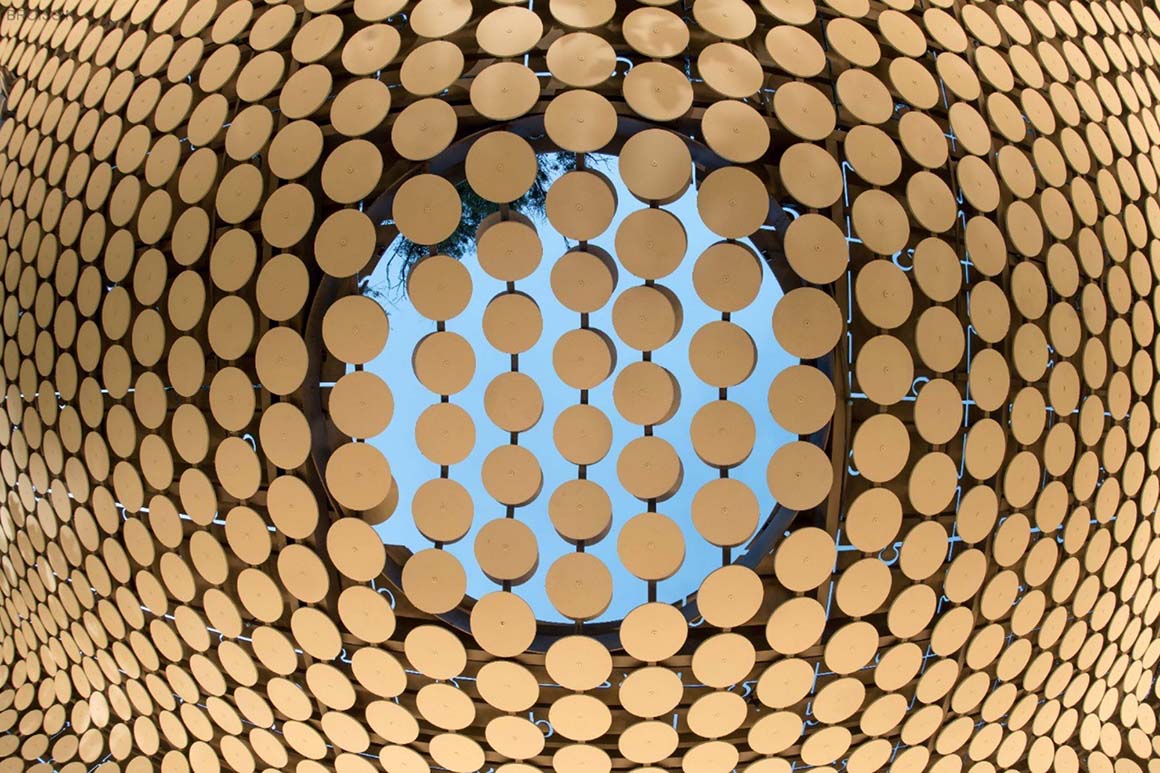 The Egaligilo Pavilion’s external structure remains lightweight, with contrasting shapes. Inside it holds a living oasis; symbolically it gives the visitor the capacity to assume a new role, to reinvent themselves.