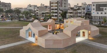 The sense of three-dimensionality is vivid and distinct, as if the curved canvas has been cut into square shapes. Starting very small, the openings that span across the entire wall gradually increase in size and number as they turn corners and ascend slopes, influenced by the adjacent park. Consequently, as one walks, the building’s expression changes dynamically, resembling a shifting visual narrative, depending on the direction of observation. Its distinctive façade makes it easily recognizable from any angle.