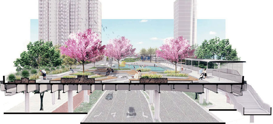 The “Floating Islands” project is an attempt to integrate infrastructure into public space in a high-density city. In the future, our cities may have a large number of such spaces.