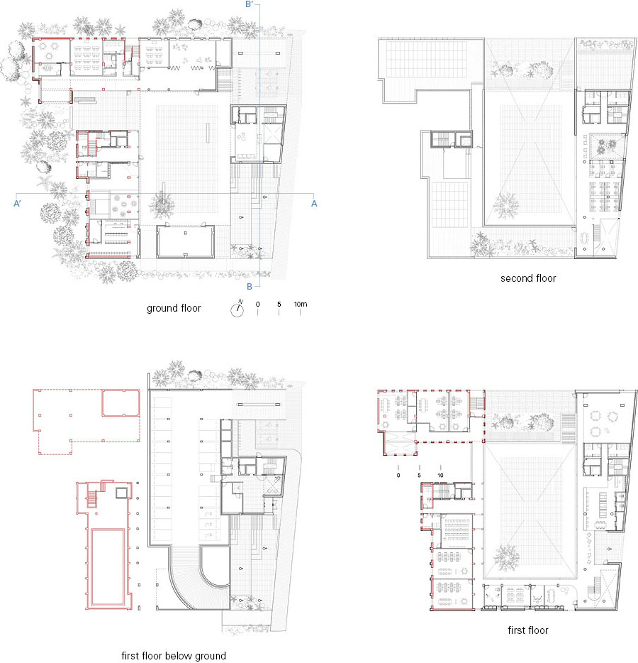 Project: Geumchon Oulim Centre / Location: 45, Geumjeong-ro, Paju-si, Gyeonggi-do / Architect: 818 architects / Structural engineer: Seoul structural engineering / Civil engineer: Nowgeo / Mechanical engineer: Seah Engineering / Electrical engineer: Woolim Electric / Landscape architect: Anpark / Client: Paju City Hall / Site area: 3,840m² / Bldg. area: 1,720m² / Gross floor area: 5,660m² / Bldg. scale: two story below ground, four stories above ground / Design: 2021.6.~2022.8. / Construction: 2022.10.~2024.6. / Completion: 2024.7. / Photograph: ©Yongbaek Lee (courtesy of the architect)