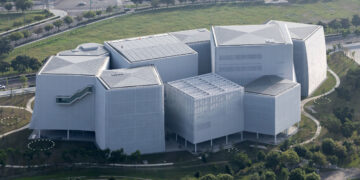 Even in the bustling streets, the hotel captivates passersby with its vintage mosaic tiles adorning the interior walls. Various patterns and designs made from colorful tiles are exposed through the curtain walls, creating an effect reminiscent of large murals. These murals abstractly represent the city’s identity, blending various races, religions, and cultures.