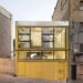The central support of both vaults allows the water from the sprinklers to rise via one column, and via the other, the electrical wiring that feeds the opening of the ventilation windows. Below, around the plants, a 1m high plinth clad in expanded metal reveals the heating system ducts that run around the perimeter, which heat the room when temperatures drop below 14°C. These different mechanisms, added to a standard automated irrigation system, are operated simultaneously throughout the year by an agricultural industry digital controller. On the four glass fronts that surround the square plan of the building, an extra clear glass was used, more translucent to the human eye. In this way the plants are more visible from the outside, turning the building into a large showcase that exhibits its habitants.