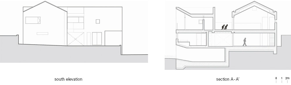 Project: Hanok 3.0 / Location: Noeun-ro 426beon-gil, Yuseong District, Daejeon, Republic of Korea / Architects: Hyunjoon Yoo Architects / Project team: Hyunjoon Yoo, Jinsung Heo, Jihyun Kim, Namsu Kim / Constructor: CNA / Structure engineer: Barun / Civil engineer: Sungwoon / Mechanical, eletrical engineer: Doowon / Client: Saeyoung kim / Program: Single House / Site area: 303.90m² / Bldg. area: 162.46m² / Gross floor area: 316.75m² / Bldg. coverage ratio: 53.46% / Gross floor ratio: 88.03% / Bldg. scale: one story below ground, two stories above ground / Height: 10.6m / Structure: Reinforced concrete / Exterior finishing: Drivit / Design period: 2007.9~2008.4 / Construction period: 2008.5~2009 / Photographer: ©Seunghun Yum (courtesy of the architect)