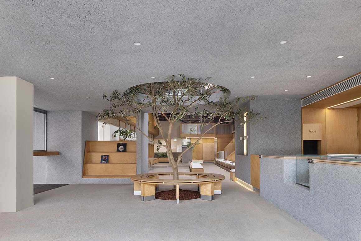 Within the generous ceiling height, the building is organized into two levels, opening up the interior while expanding its functional possibilities. The café area at the entrance, the central activity zone, and the program spaces toward the rear are distinct yet connected through a clear and orderly circulation system. Conceived as a courtyard-like garden, the café forms a “corridor of scenery” that blurs the boundary between interior and exterior. An open entrance is shaped around a large central tree, where natural stone textures further respond to the sensory world of pets.