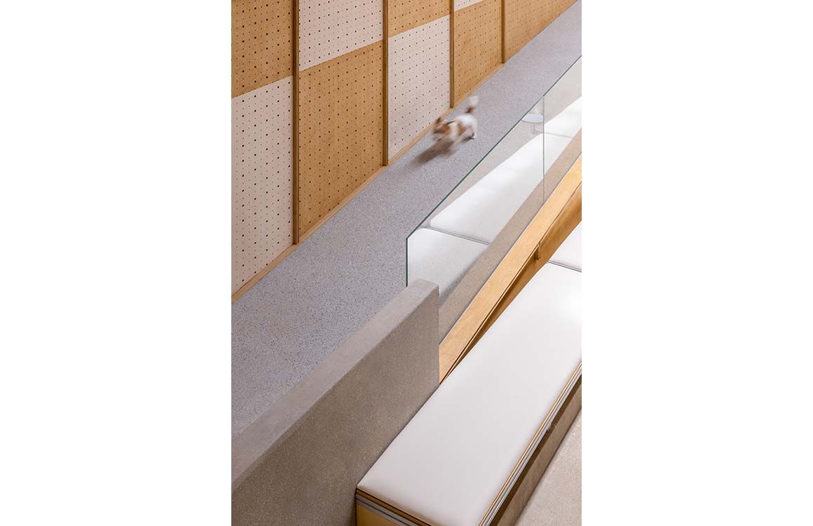 Small yet thoughtful details reflecting pets’ behaviors are integrated throughout the design. Spaces beneath benches are left open, and long, continuous seating allows pets to move freely. Meanwhile, operational areas are supported by movable furniture, ensuring flexibility and adaptability in daily use.