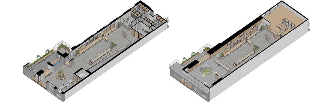 The overall design strategy begins with the conditions of the existing building. Useful elements of the original structure were retained, with key roof components left exposed, while new structures were introduced through carefully articulated connections. This approach reflects a sustainable design concept in which old and new intersect and intertwine, revealing organic and open spatial relationships throughout the project.