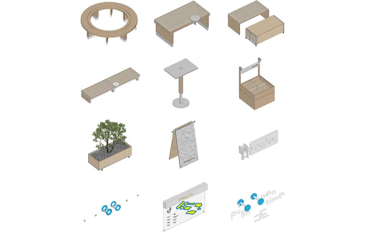 A pet-friendly ramp structure offers a brand experience that expands from two dimensions into three. Graphic elements emphasizing depth and volume introduce an engaging visual language throughout the space. Symbols that combine functionality and symbolism add layers to the brand identity, while accent colors in blue and yellow—tones that pets are particularly sensitive to—along with compositions of lines and planes, convey a relaxed yet lively sensibility. This integration of visual languages enhances the spatial coherence and leaves a strong, lasting impression.