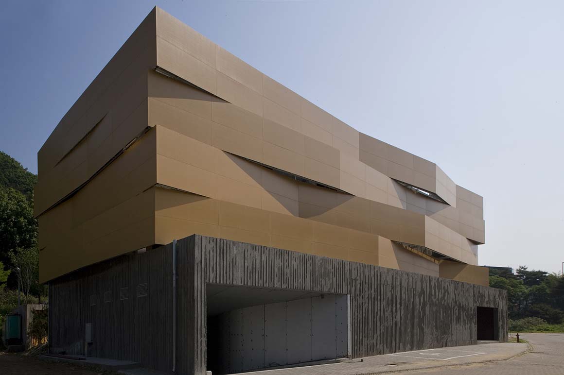Heyri Theatre is a large open space, not delicately designed but meticulously calculated, engineered and measured, resulting in a typology more reminiscent of an agricultural building than theatre in the conventional sense. Situated in the rapidly growing Heyri Art Valley in Paju, Gyeonggi Province, ‘Heyri Theatre’, responds to the growing need for overnight accommodation while offering a cultural complex to facilitate the performing arts. It is to this extent Heyri Theatre is a multi functional building operating as both unique performance space and boutique hotel, while following the stipulated ethos of the masterplan by engaging with the landscape in multiple ways.