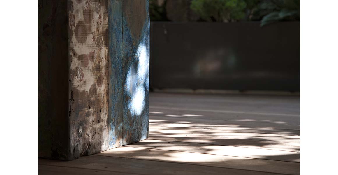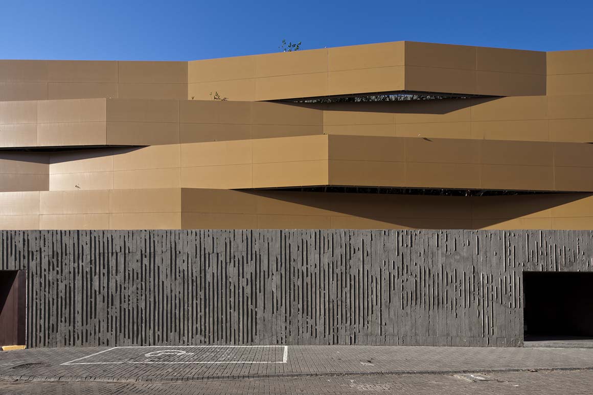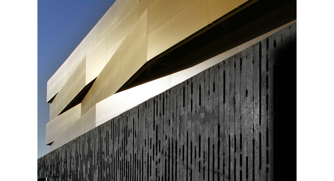 Juxtaposed with the exposed concrete and the four geometric ‘ribbons’