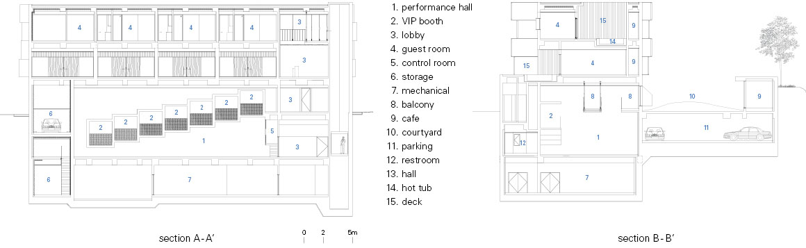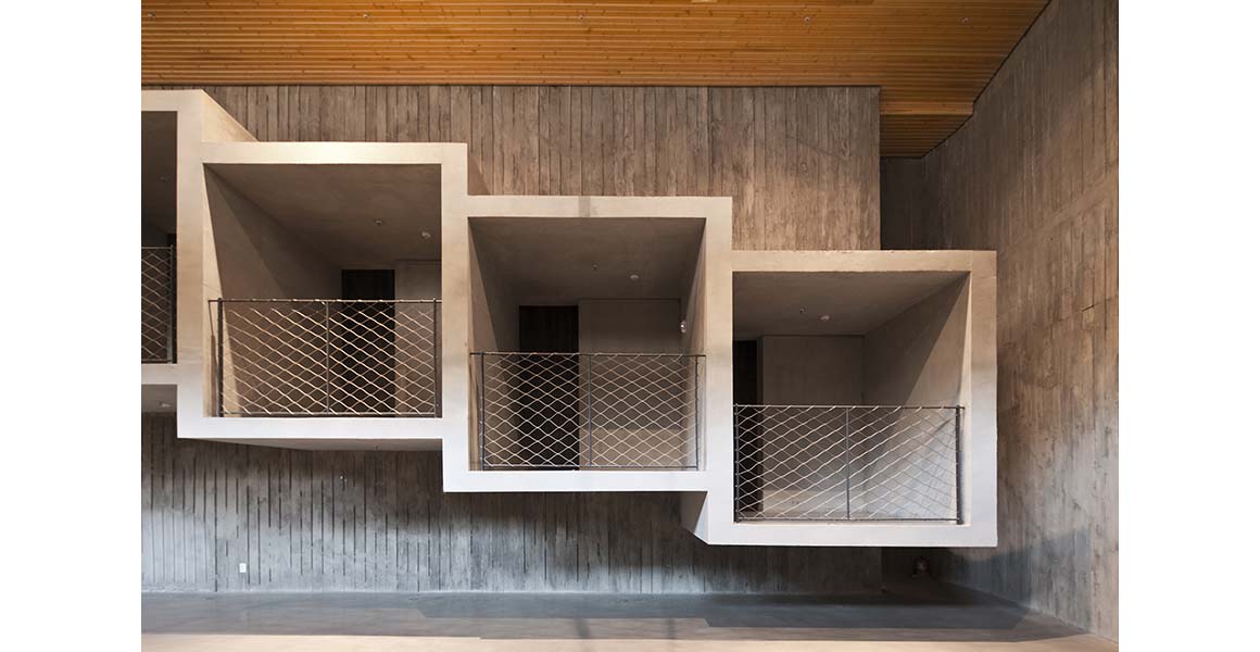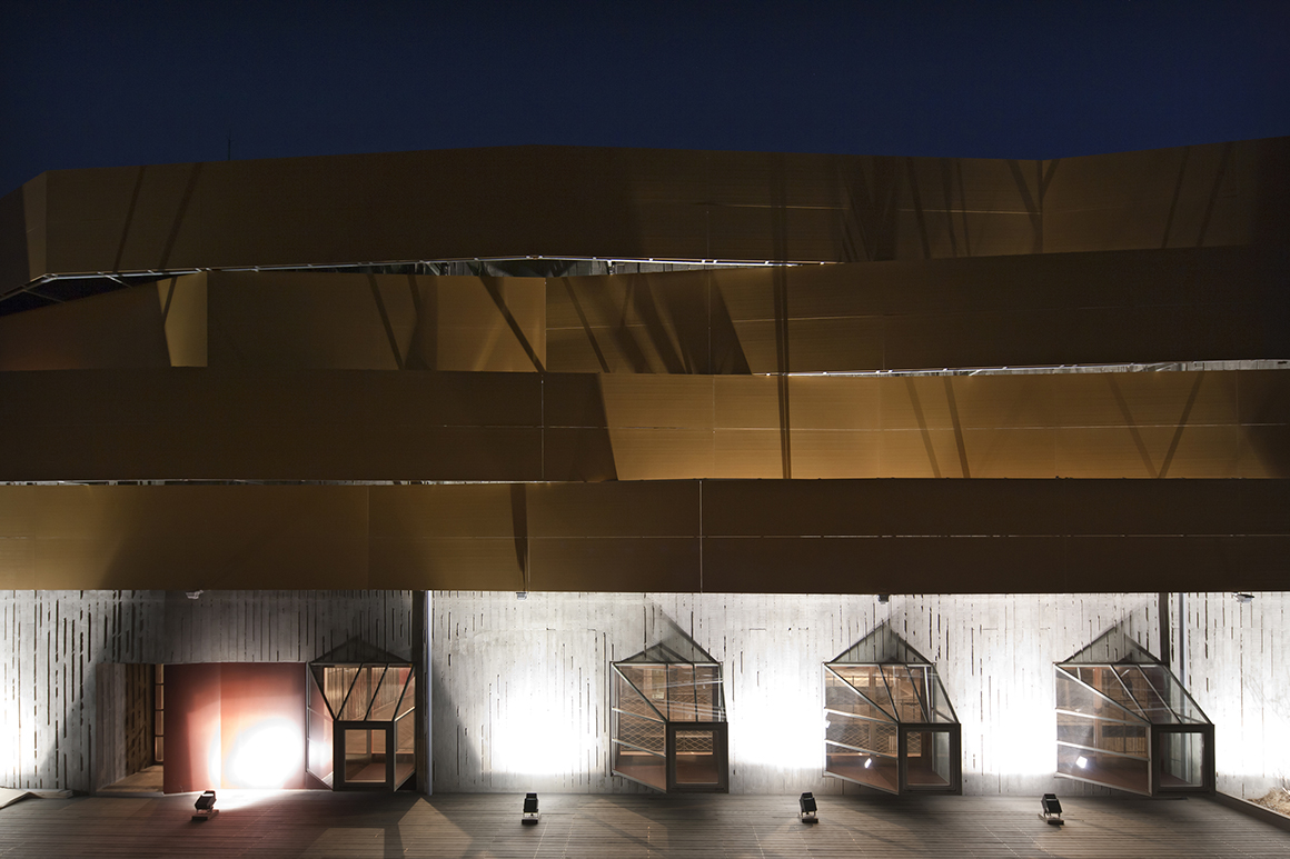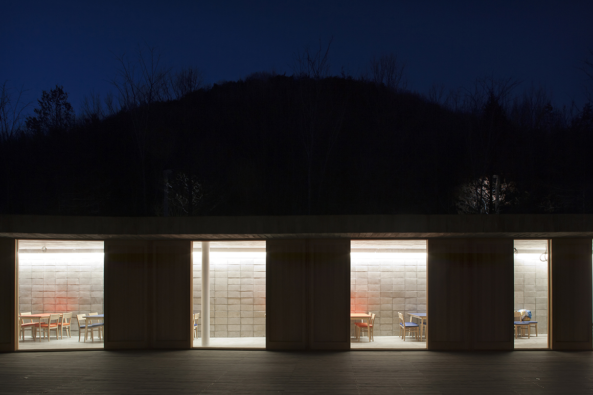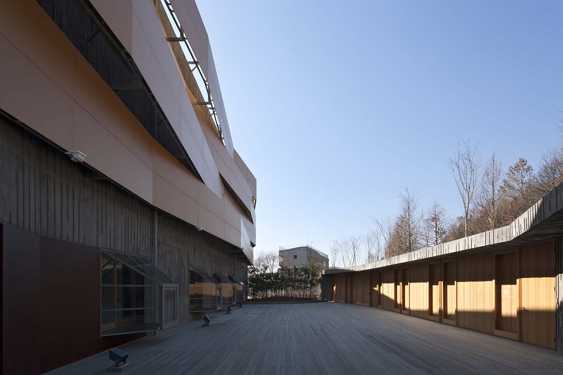 Project: Heyri Theatre and Hotel / Location: Heyri Art Valley, Beopheung-ri, Tanhyeon-myeon, Paju-si, Gyeonggi-do, Korea / Architect: BCHO Partners (Byoungsoo Cho) / Project team: Lee Jung-hui, Kang Young-jun, Yang Hong-joon, Kang Woo-hyun, Kim Sara, Angel Tenorio, Kim Sung-hwa, Park Ha-hyeok / Use: Performance hall / Site area: 1,155.1m² / Bldg. area: 572m² / Gross floor area: 2308.5m² / Bldg. coverage ratio: 49.52% / Gross floor ratio: 86.62% / Bldg. scale: two stories below ground, three stories above ground / Structure: Reinforced Concrete / Completion: 2011 / Photograph: ©Wooseop Hwang (courtesy of the architect)